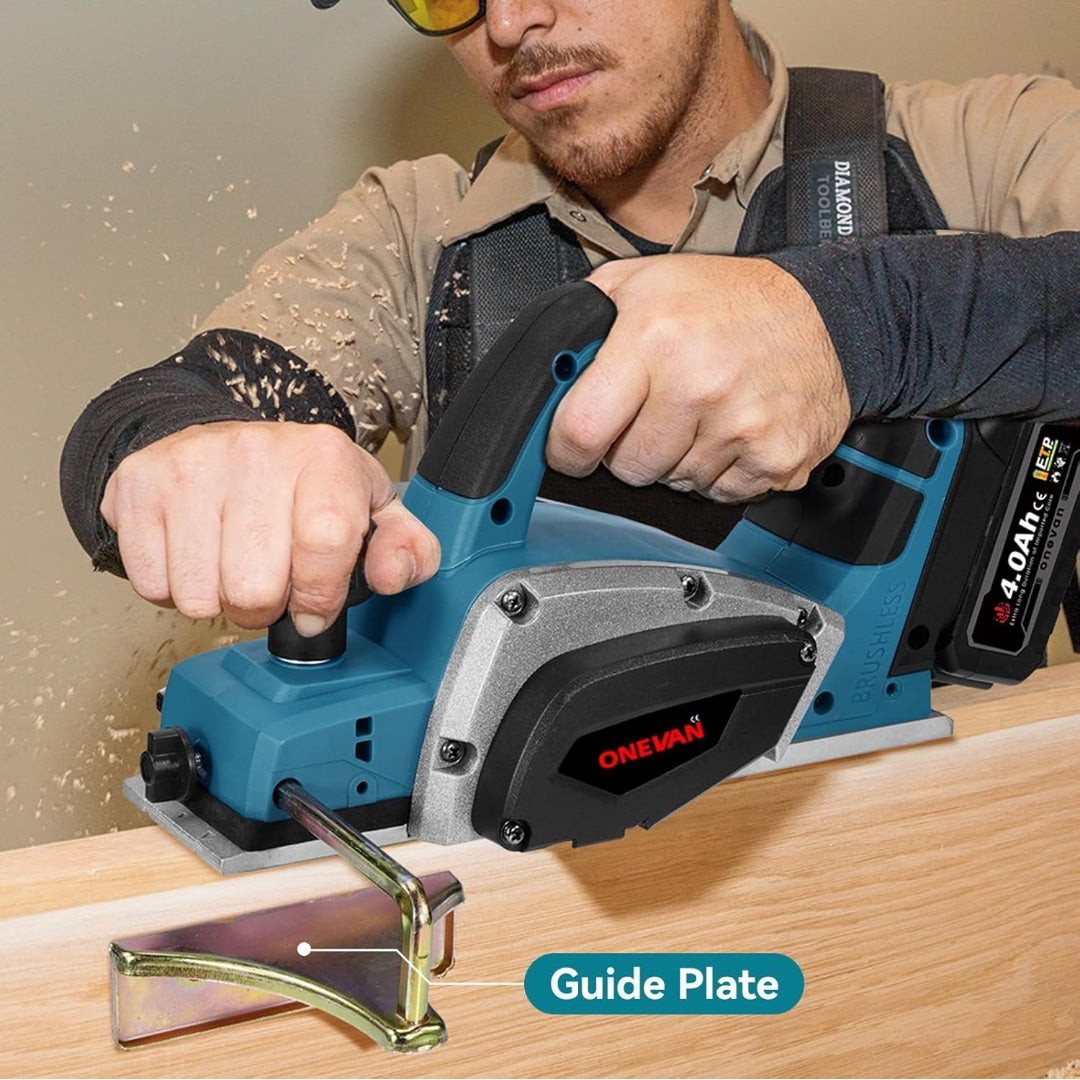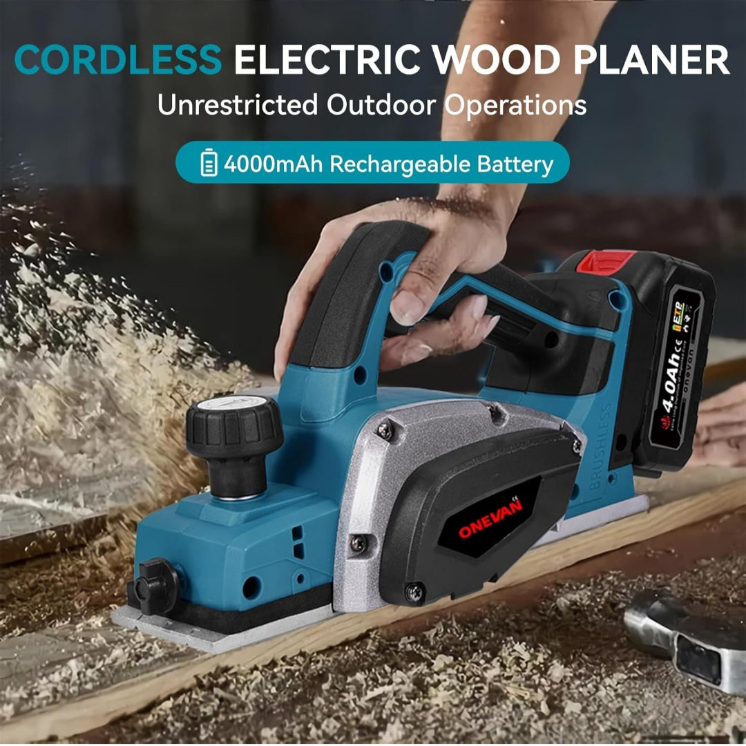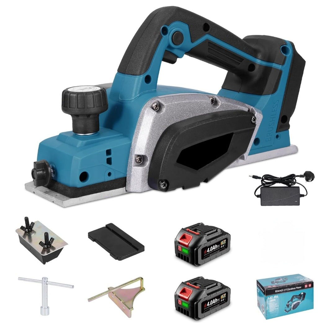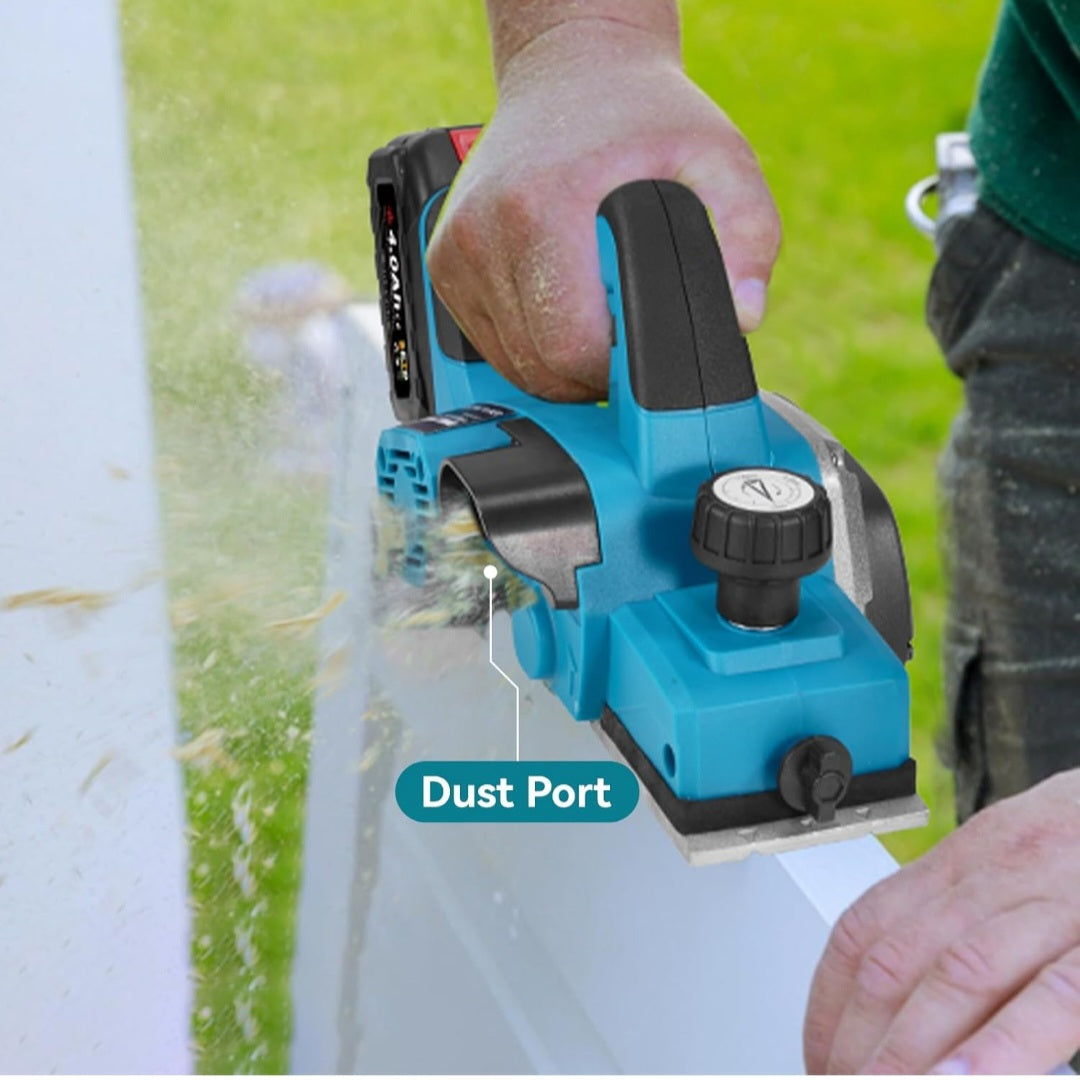 Profesionalna bežična blanja 48V idealna je za brzo i precizno obradu drvenih površina – bez kablova i ograničenja u radu. Opremljena je dvije snažne litijum baterije od 48V (4.0Ah), što omogućava dugotrajan i neprekidan rad.