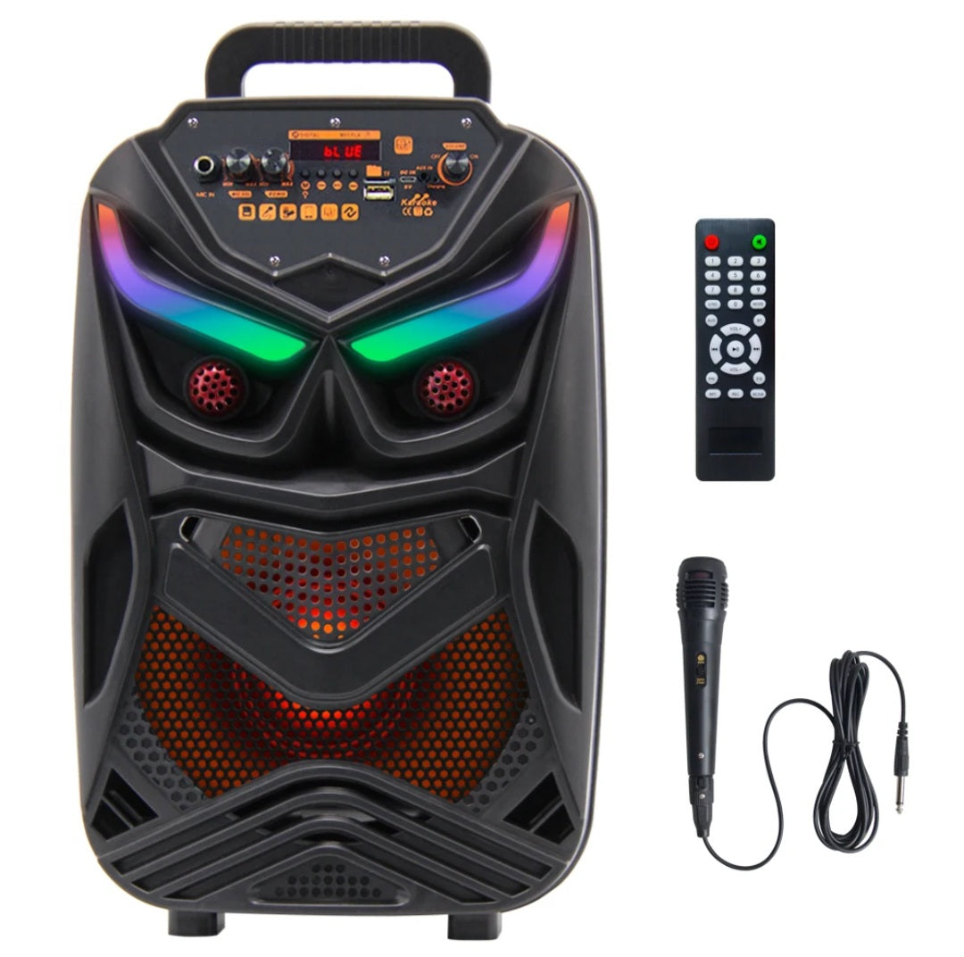 Unesite energiju u svaku zabavu uz ovaj moćni prenosivi Bluetooth zvučnik sa efektnim LED svetlima i snažnim zvukom! Dizajniran da izgleda kao futuristička maska, ovaj zvučnik ne samo da zvuči odlično, već i izgleda spektakularno!