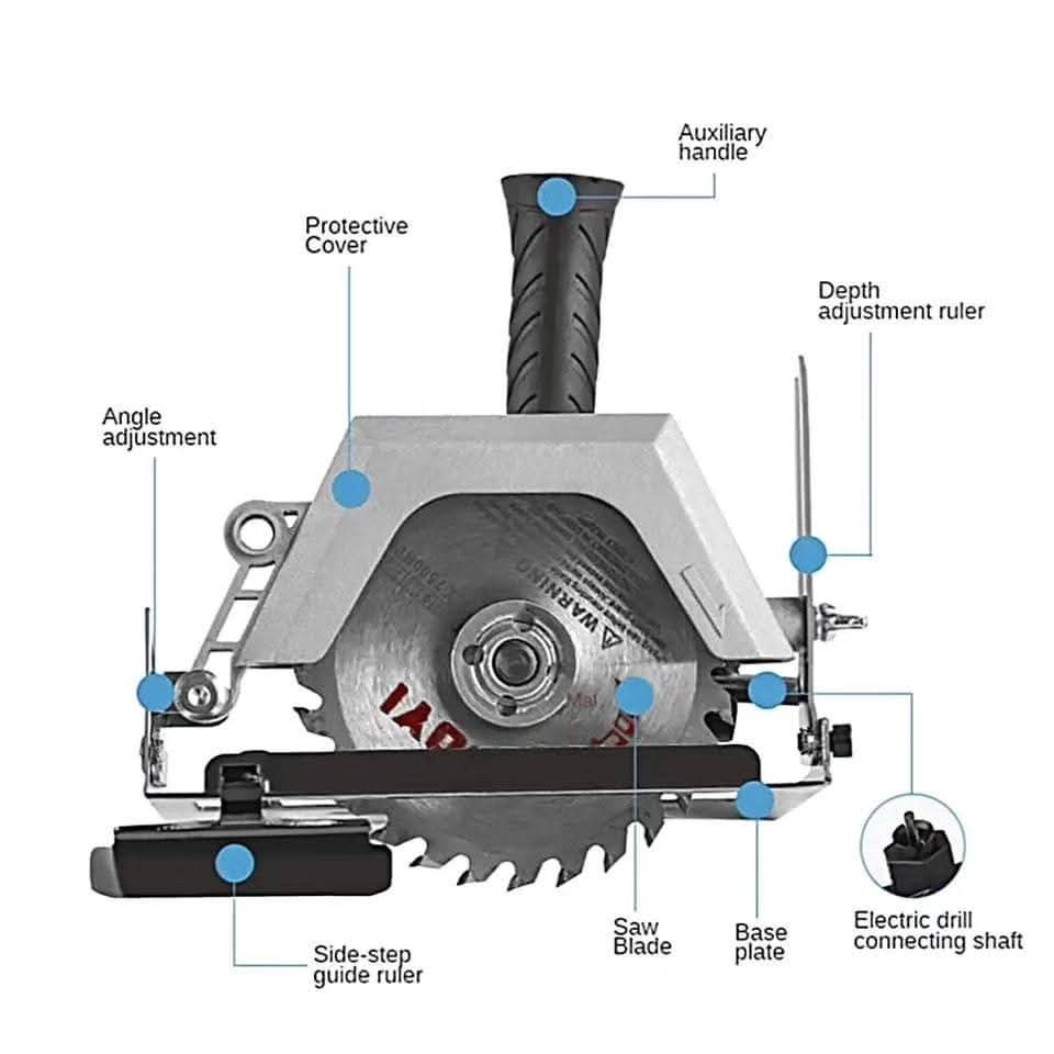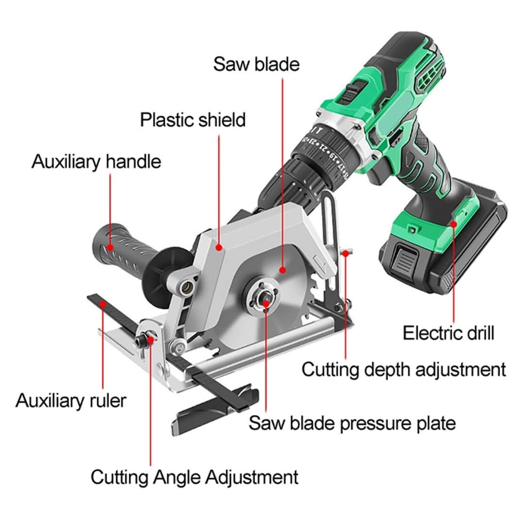 Glava za konverziju električne bušilice može pretvoriti električnu bušilicu u električnu kružnu testeru, štedeći vreme i trud, a jedna mašina ima višestruku upotrebu.
