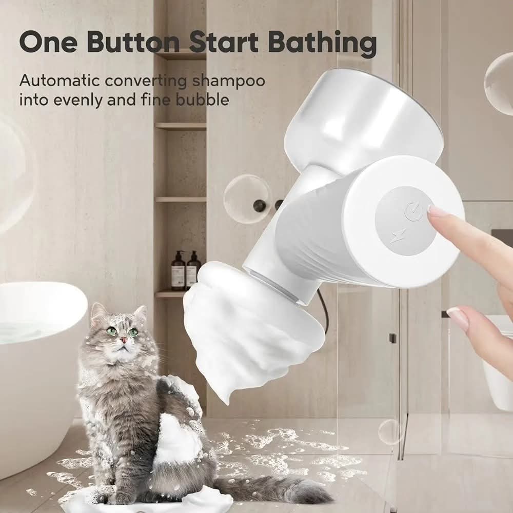 Ovaj uredjaj se koristintako što sipate malo vode i šampon u odeljak na vrhu aparata i on počinje da pravi pjenu. Na vrhu aparata nalazinse gumeni češalj koji će prižiti jos bolji ugodjaj i masažu vašem psu tokom kupanja.