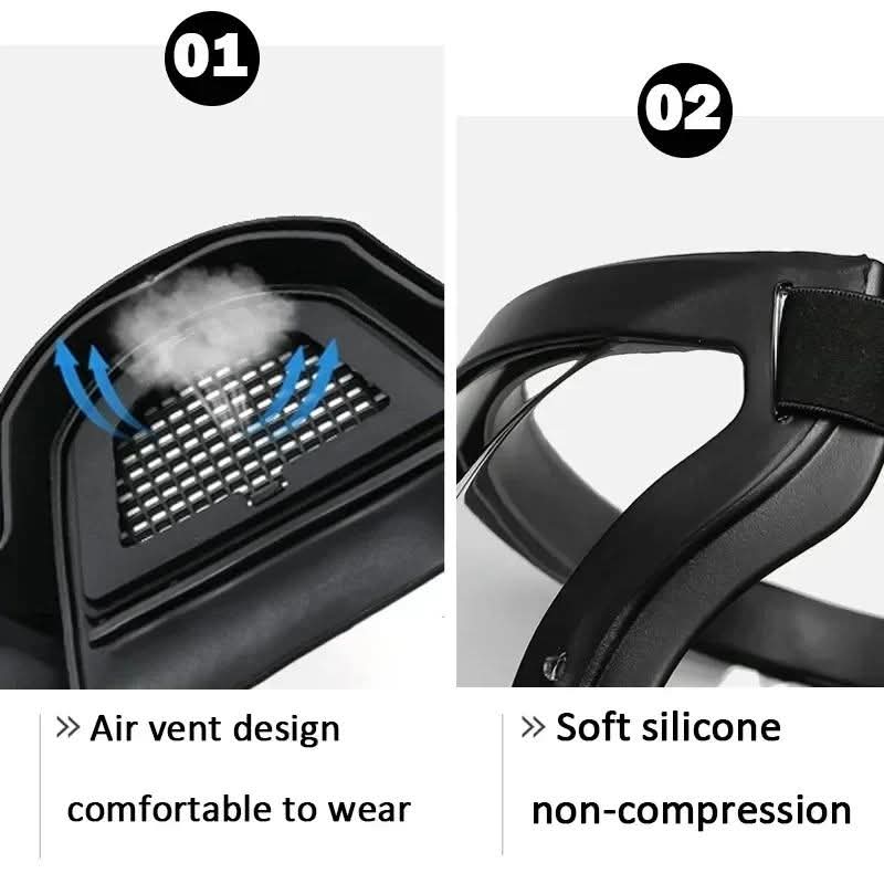 Sam vazduh kruži po unutrašnjosti maske prije nego što biva udahnut i takva unutrašnja struja spečava magljenje maske.