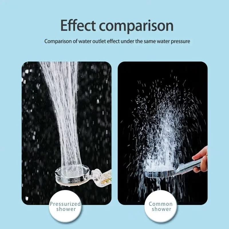 Ovaj tuš nastavak ima ugradjen propeler koji omogućava 2 puta jači pritisak i mlaz vode.