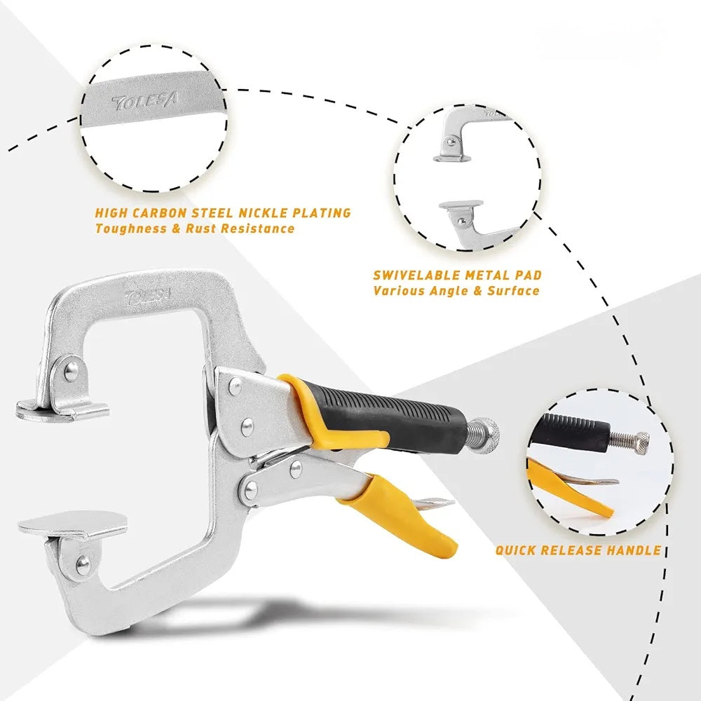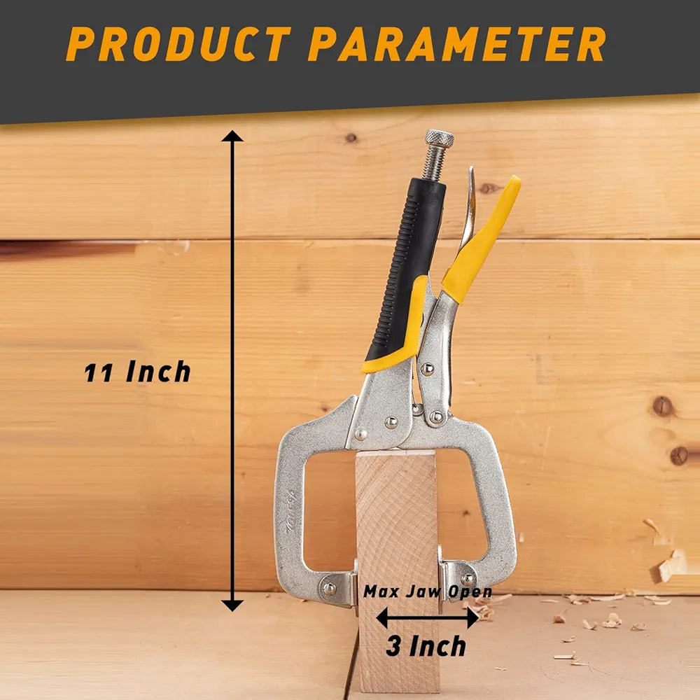 Ova profesionalna C-steza sa brzim otpuštanjem izrađena je od visokokvalitetnog čelika sa nikl-platingom koji pruža izuzetnu čvrstoću i otpornost na rđu. Idealna je za stolarske, bravarske i majstorske radove.