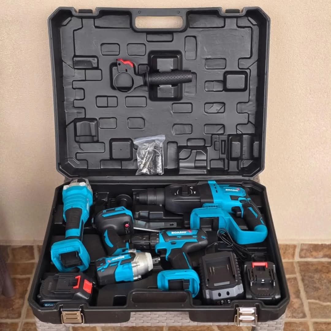 Profesionalni Aku set 4u1 sa dvije litijumske baterije 88V (6.0 Ah): udarni odvijač, brusilica, šrafilica, bušilica sa čekićem (hilti) -