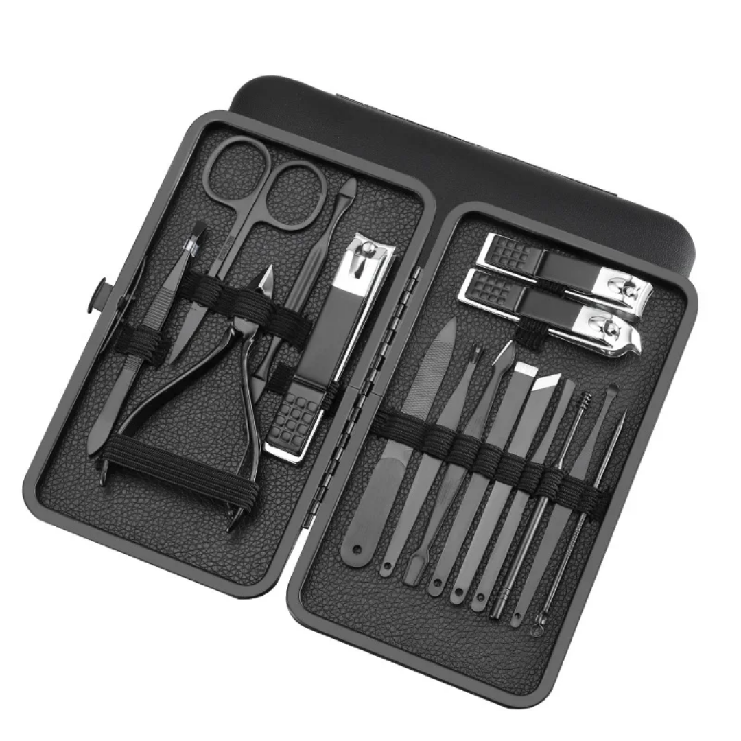 Ovaj elegantan crni komplet za manikir i pedikir sadrži sve što vam je potrebno za savršenu njegu noktiju – bilo kod kuće, na putovanju ili u profesionalnom salonu.