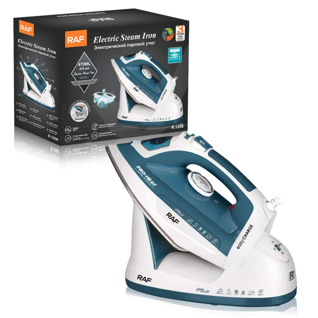 RAF R-1208B je snažna i pouzdana parna pegla namenjena brzom i efikasnom peglanju svih vrsta tkanina. Sa velikim rezervoarom od 470 ml, keramičkom stopom i jakim mlazom pare, ova pegla obezbeđuje profesionalne rezultate u svakodnevnoj upotrebi.
