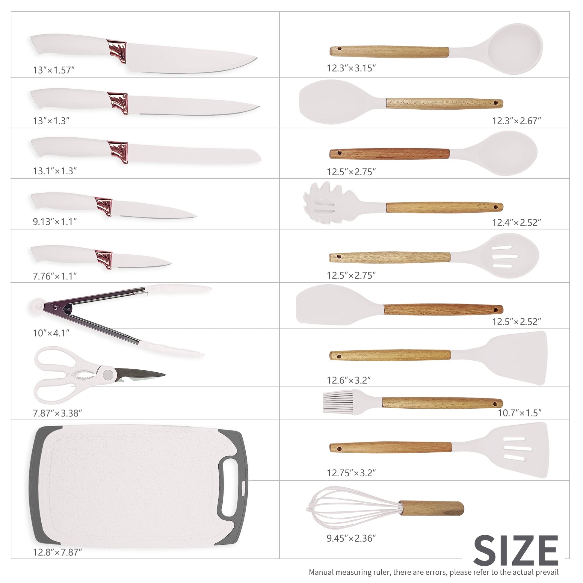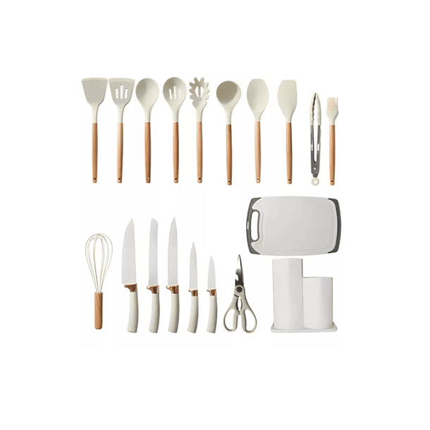 Set od 11 silikonskih kašika sa drvenom drškom, daske za rezanje i 6 noževa od hiruškog celika
