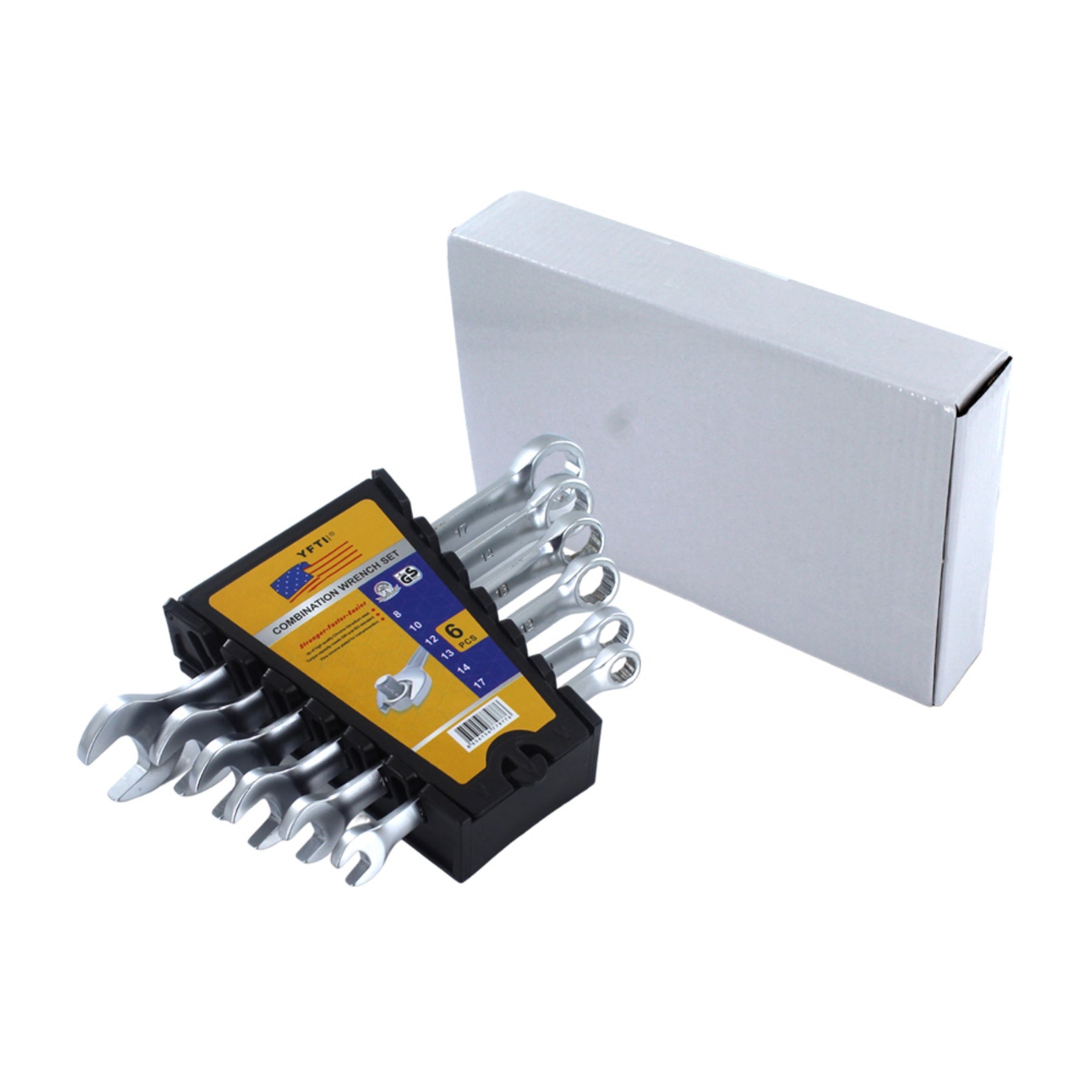 Ovaj praktični set kombinovanih ključeva idealan je za sve vrste mehaničkih i tehničkih radova. Sadrži 6 ključeva različitih veličina (8, 10, 12, 13, 14 i 17 mm), izrađenih od visokokvalitetnog hrom-vanadijum čelika (Cr-V), što im obezbjeđuje dug vijek trajanja, otpornost na habanje i koroziju. Svaki ključ ima otvoreni i zatvoreni (viljuškasti i okasti) kraj, što omogućava veću svestranost u radu.