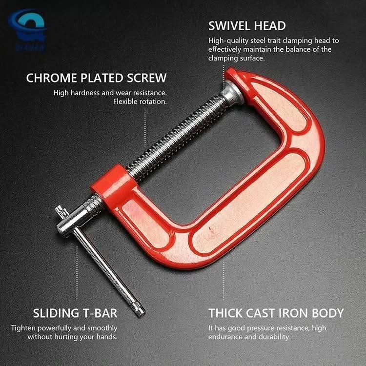 POUZDAN KVALITET C-stega je napravljena od industrijskog livenog gvožđa sa profesionalnom termičkom obradom. Dio u obliku slova C je prekriven crvenim metalom, a ručka T šipke je hromirana. Dobro napravljena stezaljka je čvrsta, otporna na hrđu i izdržljiva.