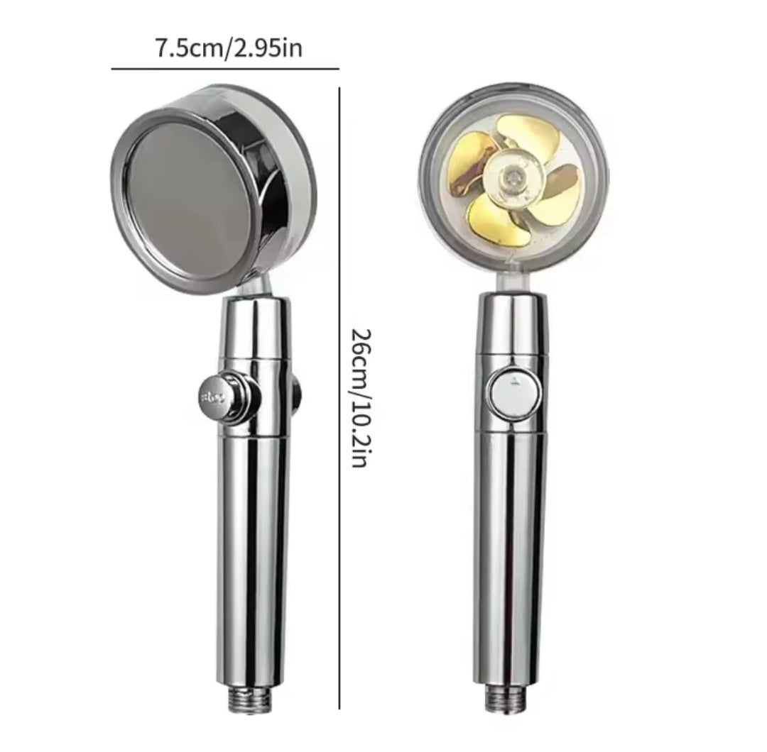 Ovaj tuš nastavak ima ugradjen propeler koji omogućava 2 puta jači pritisak i mlaz vode.
