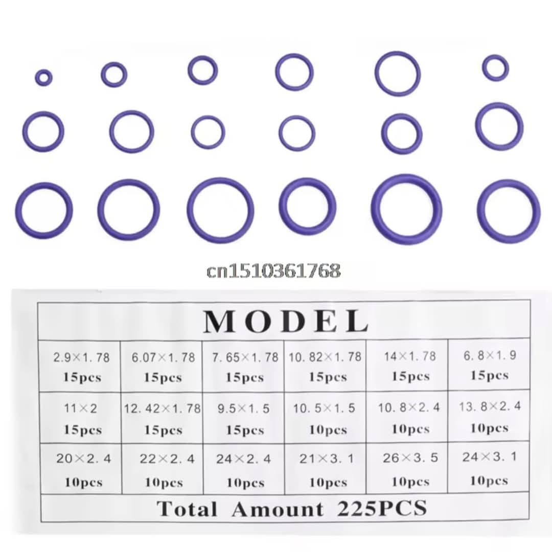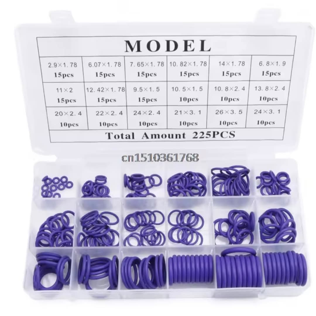 Kombinacija O prstenova od 225 komada za zadovoljavanje većine potreba za vodoinstalaterskim, automobilskim i opstim održavanjem